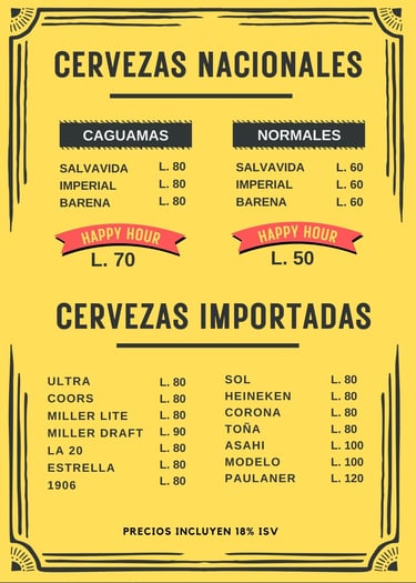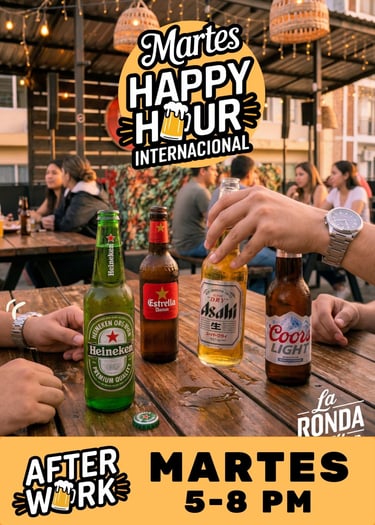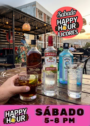 La mejor hora del día ha llegado! Disfruta de nuestros especiales de Happy Hour con bebidas a precios irresistibles. Desde cócteles refrescantes hasta cervezas bien frías, tenemos lo que necesitas para relajarte y disfrutar.