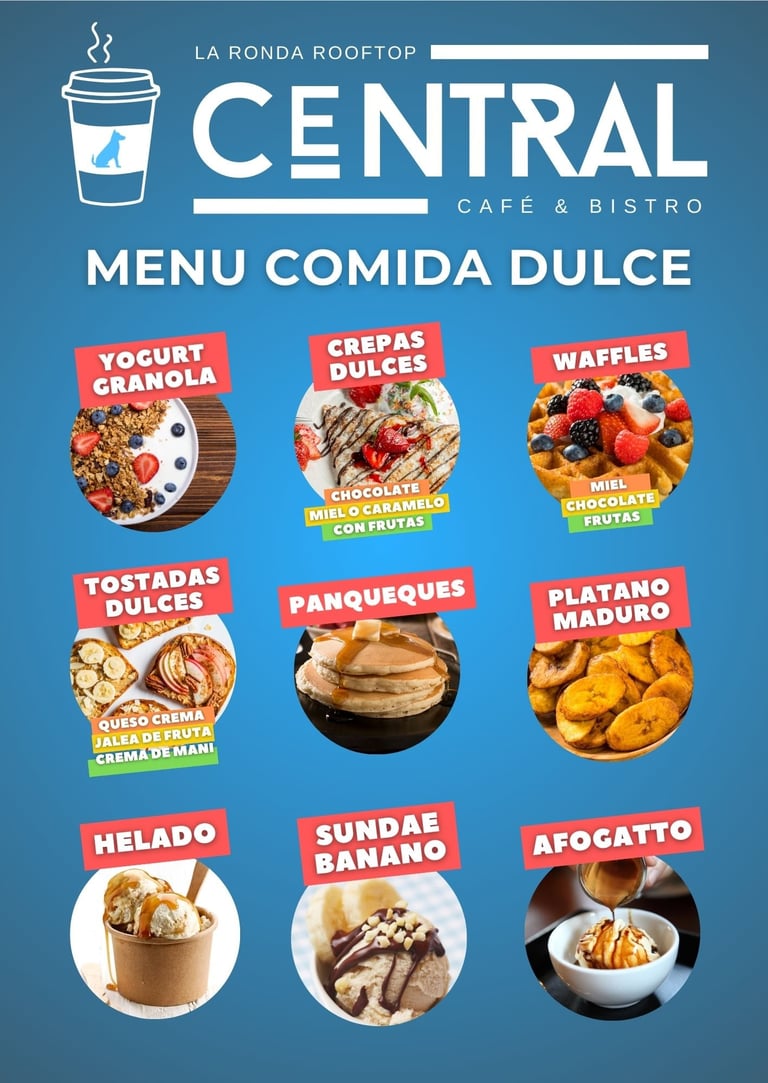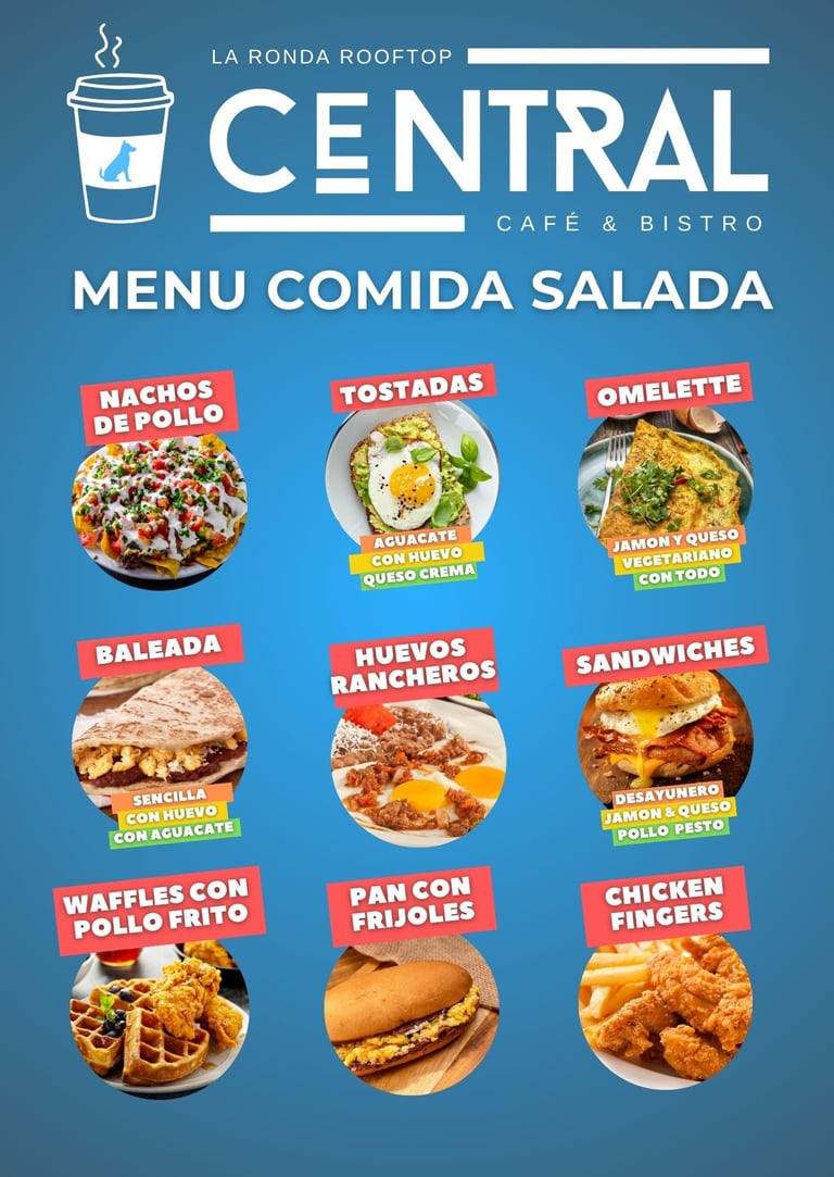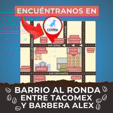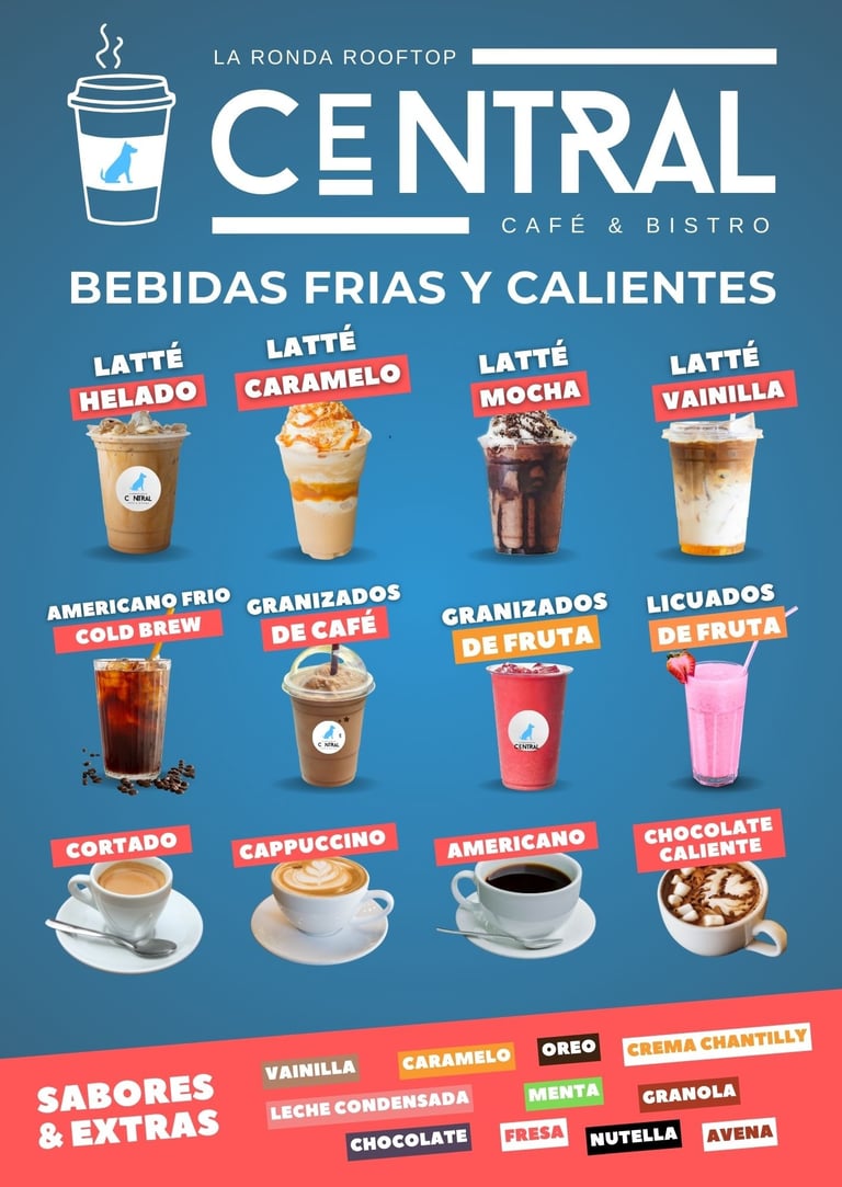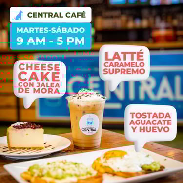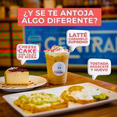 Central Café es más que una café: es un espacio donde el buen café, los sabores únicos y el ambiente acogedor se encuentran. Ofrecemos desde almuerzos, espressos y lattes hasta postres y licuados.